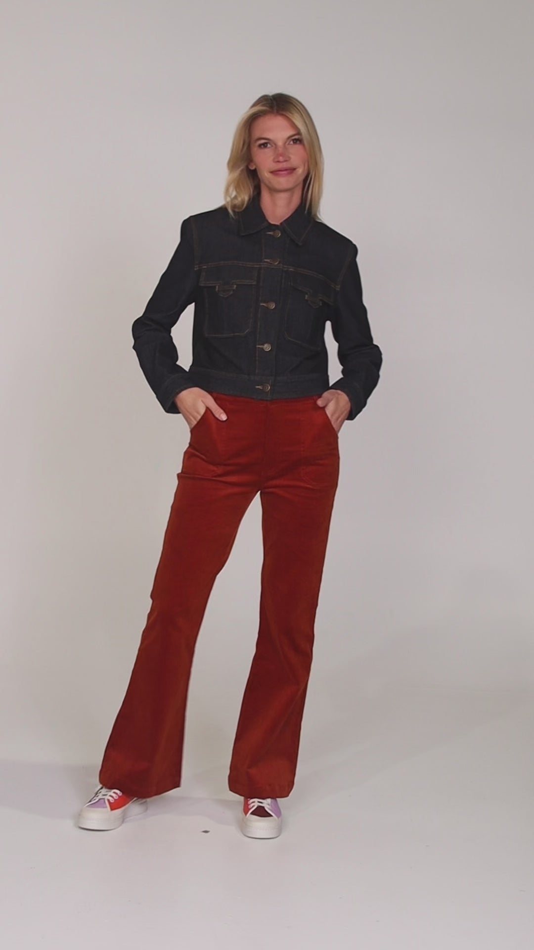 The Boom Shankar Bellerose Jacket is a true-to-size cropped denim jacket in Midnight Denim, with a structured collar, contrast golden double stitching and our signature Boom Shankar smile antique brass buttons, a little detail that makes it unmistakably us. Layer it over bold prints and knits, or wear it head-to-toe with the Bellerose Pant and Skirt for a sharp, urban denim moment.