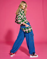 BOLD BLOOM MEETS RETRO GEO. Introducing Keiko, a floral print with a twist! Oversized, graphic petals in soft blush pink pop against a saturated emerald base, creating a print that feels playful, powerful and completely modern. Confident and a little unexpected, Yumi is the perfect retro geo. Crafted from lightweight cotton with a smooth, breathable feel, she’s designed to move with you. Vibrant, effortless and ready to make an entrance. Wear the prints together or pair it back with our denim heroes and Midori Cotton Essentials.