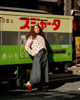 The Boom Shankar Flower Jumper is inspired by cross-stitch design, with cute flower motifs in cherry red, forest green and primary yellow on a fluffy cream base. Layer it back with denim or cord for an easy everyday look, or pair with our red gingham seersucker styles for a maximalist moment.