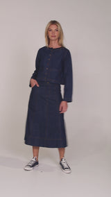 Fumiko Skirt - Dark Denim Contrast Stitching
