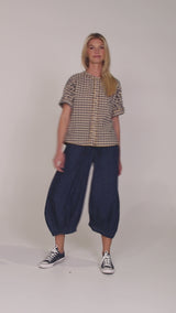 Introducing our brand new Boom Shankar Guru Pant in a winter weight Dark Denim with classic contrast stitching. Just like your everyday jeans, but in a Guru shape. We are known for this 3/4 length pant, which is fitted at the waist with a relaxed, balloon-style leg for ultimate comfort. These 100% cotton bestsellers can be worn with just about anything.