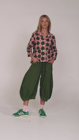 Fit notes: Our Guru Pants are designed to be fitted at the waist with a loose comfy leg. If you are in between sizes we would recommend a size up. Our model is 175cm tall with 81cm bust, 61cm waist, 86cm hips and wears a size 8/XS.