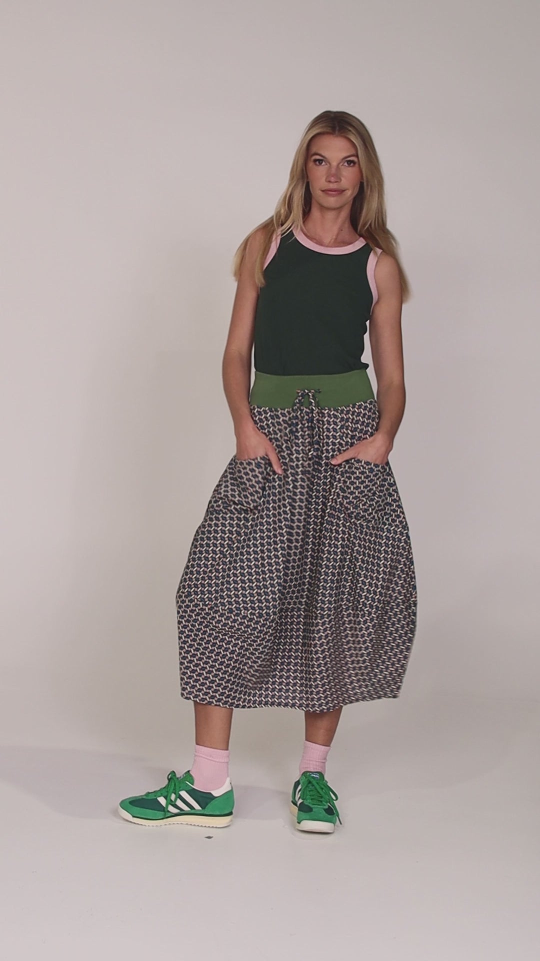 The Boom Shankar Guru Skirt is a 3/4 length cotton skirt with a super comfortable stretch cotton waistband. In 100% cotton, the Guru Skirt is an easy-to-wear option for all shapes and sizes.