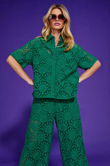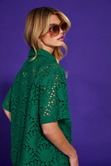 The Boom Shankar Kimi Dress is a true statement piece this season, with its intricate lace fabrication in a rich jewel-toned green.
