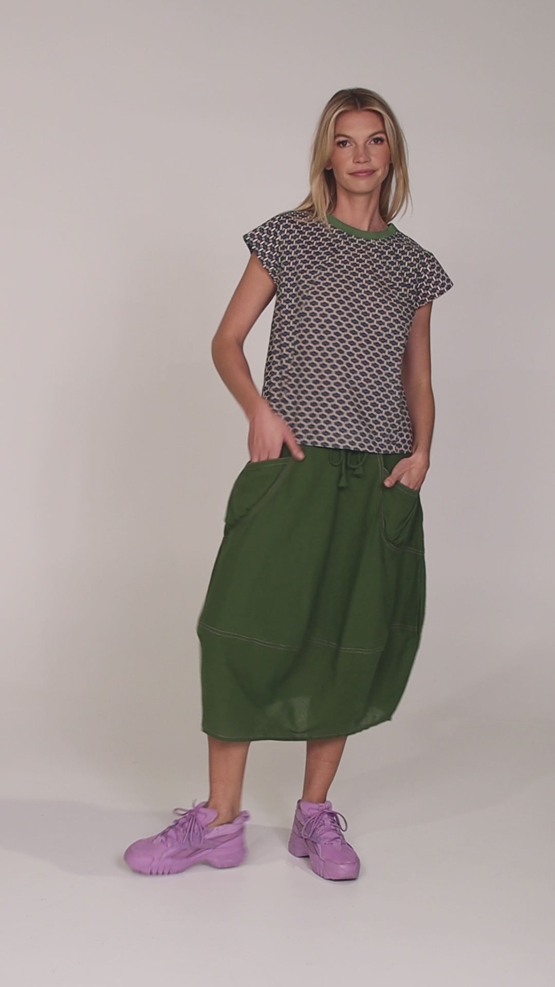 BOLD BLOOM MEETS RETRO GEO. Introducing Keiko, a floral print with a twist! Oversized, graphic petals in soft blush pink pop against a saturated emerald base, creating a print that feels playful, powerful and completely modern. Confident and a little unexpected, Yumi is the perfect retro geo. Crafted from lightweight cotton with a smooth, breathable feel, she’s designed to move with you. Vibrant, effortless and ready to make an entrance. Wear the prints together or pair it back with our denim heroes and Midori Cotton Essentials.