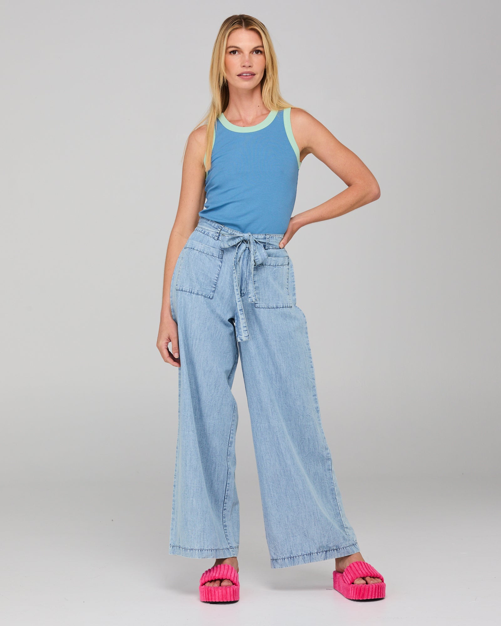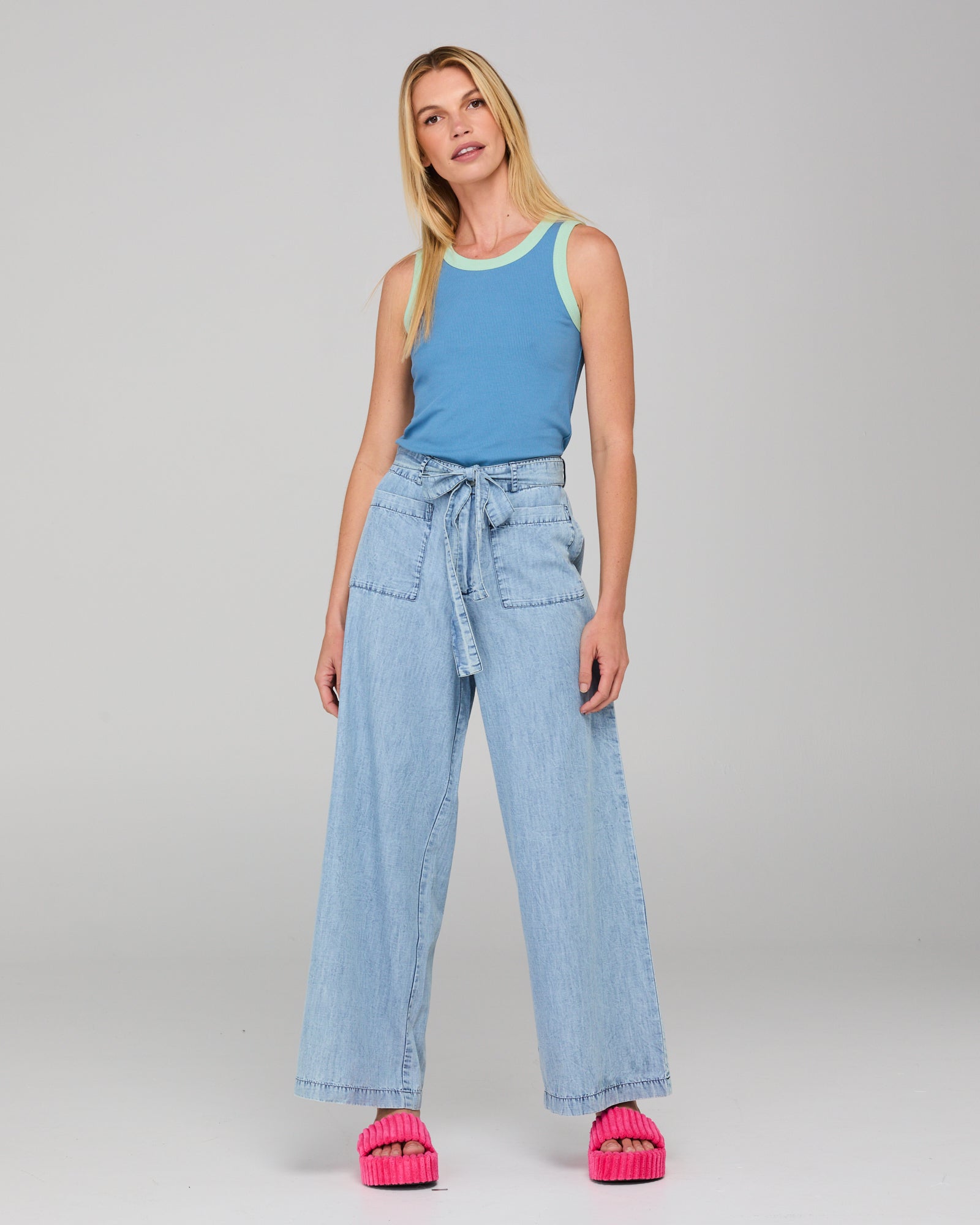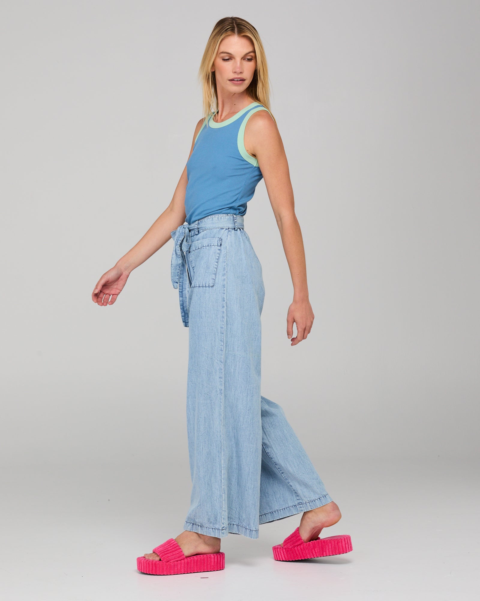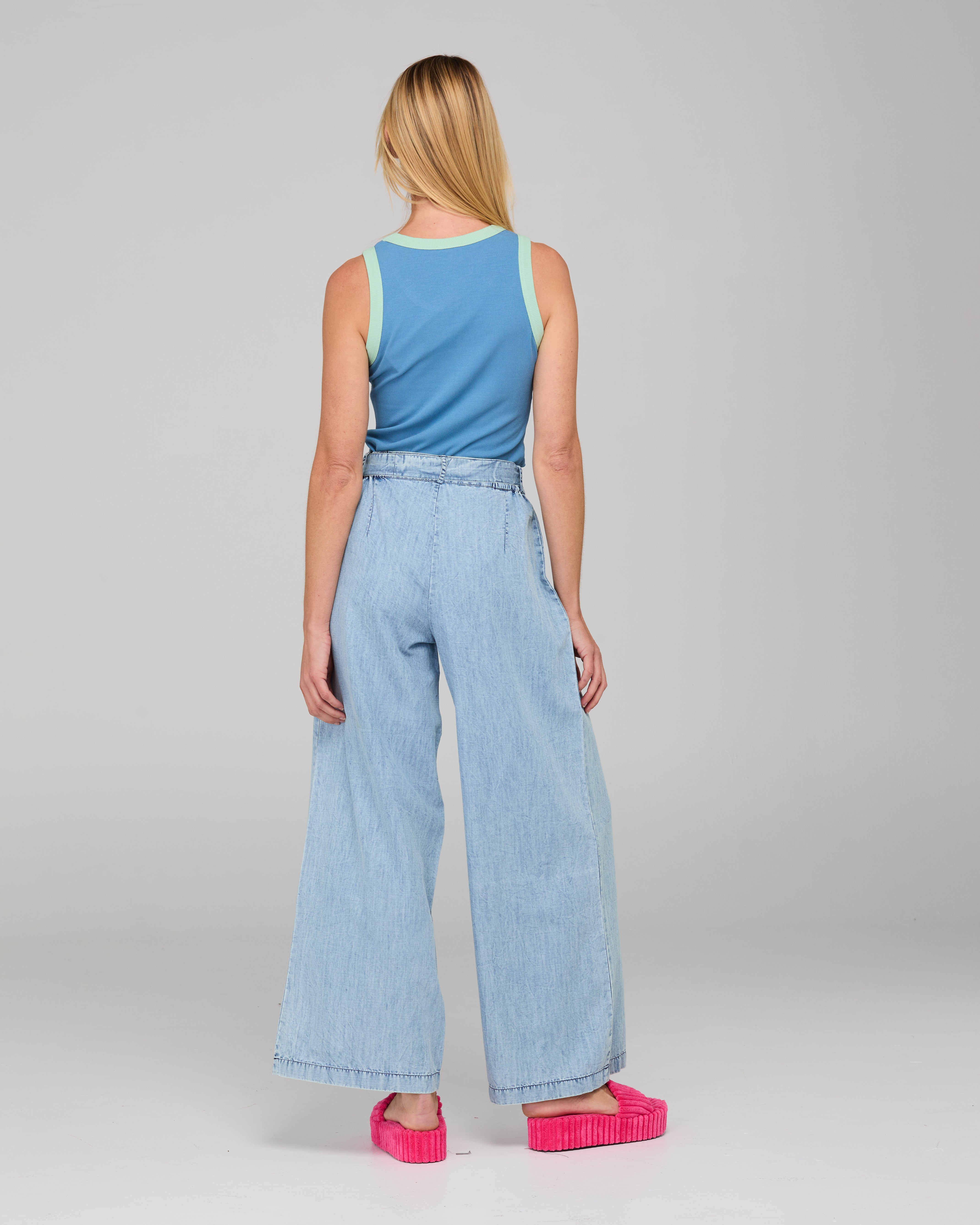 Fit notes: The Ray pant is fitted on the waistband with a relaxed wide leg.